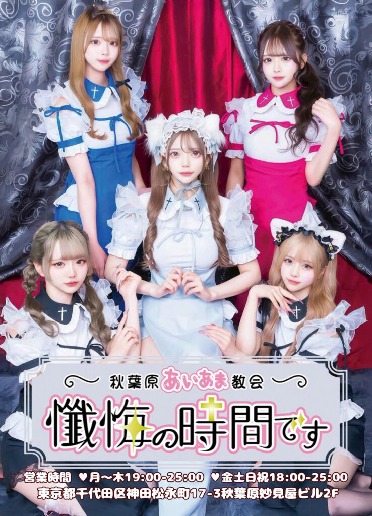 「懺悔の時間です」の系列店であり、同じくシスターが給仕を行うコンカフェですが、こちらは「ミサ(礼拝)」がテーマ。